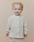 Cream-colored pants with small pointelle details. The pants have elastic and a tie at the waist, as well as elastic cuffs at the ankles. Made of 100% cotton.